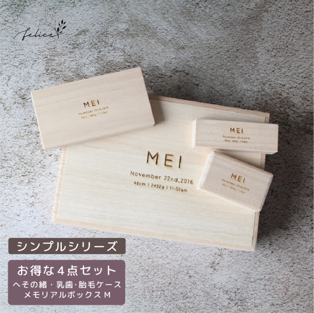 【お得な4点セット~シンプル~ 】メモリアルボックス【M】・へその緒・胎毛・乳歯ケース | 臍の緒 出産 準備 祝い 新生児 プレゼント かわいい シンプル ナチュラル おしゃれ 日本製 桐箱 ケース