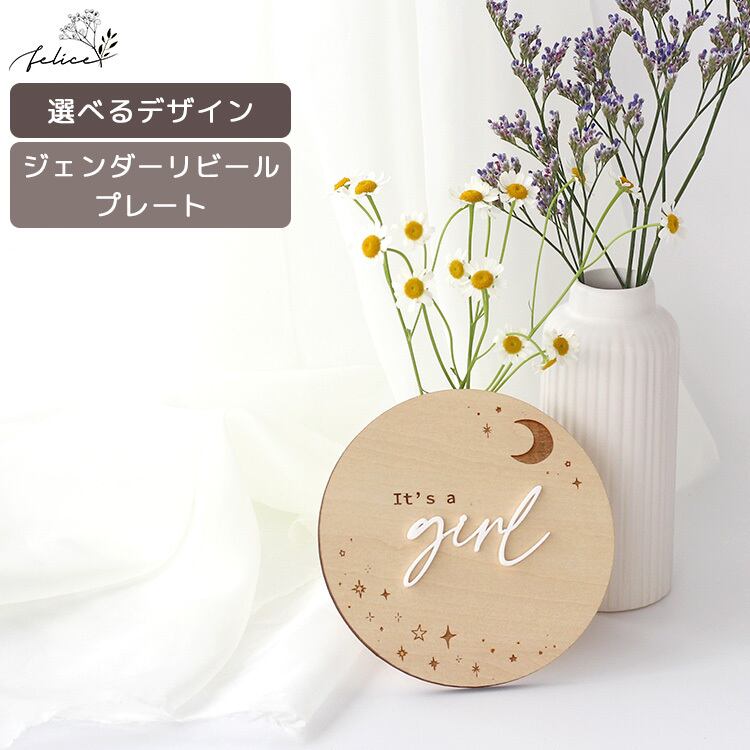 木製 【 ジェンダーリビール プレート 】~ star flower ~ 性別発表 マタニティ 妊婦 出産準備 インスタ サプライズ