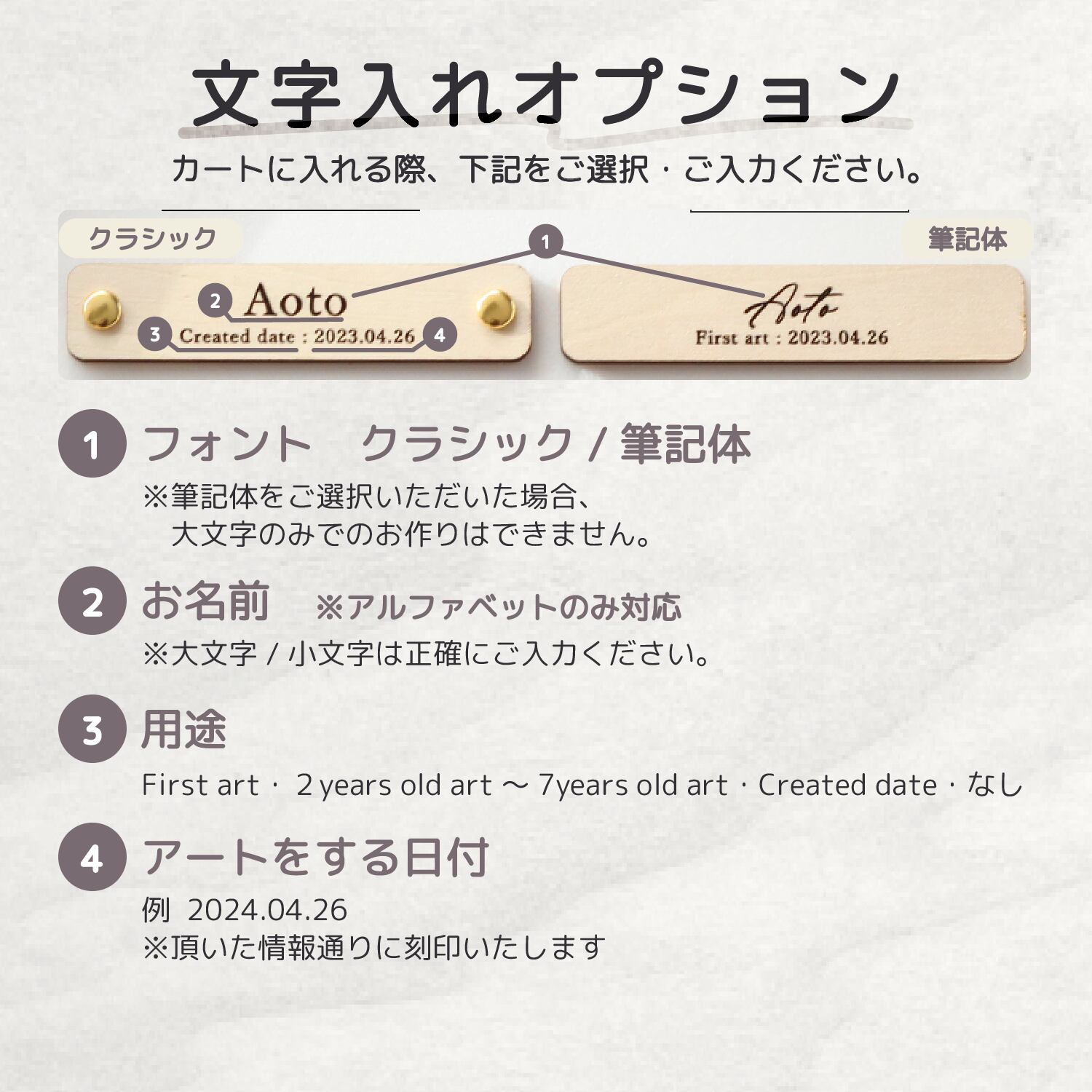 (例:2024.04.26)頂いた情報通りに刻印いたします