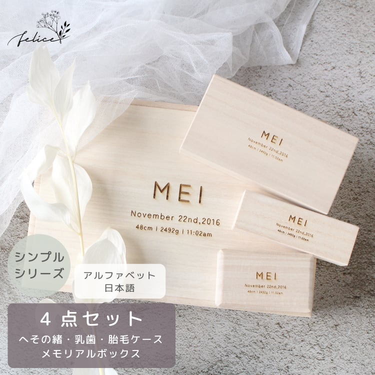 【お得な4点セット~シンプル~ 】メモリアルボックス・へその緒・胎毛・乳歯ケース | 臍の緒 出産 準備 祝い 新生児 プレゼント かわいい シンプル ナチュラル おしゃれ 日本製 桐箱 ケース